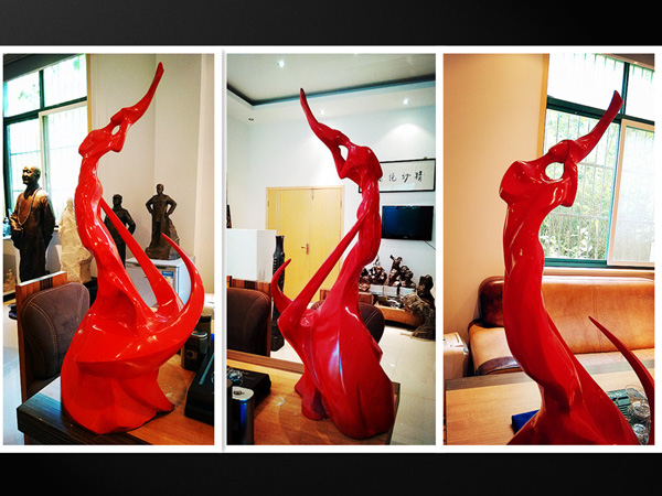 雕塑形体的结构组织与变幻的姿态相暗合,引以俩飞动弦歌姿态柔美的仙女为主体(毛泽东词云‘神女应无恙,当惊世界殊’与此处仙女弦歌有着同样的情动。多表现了飞速发展的时代,生活发生的巨变。),一女抚琴动操,一女欲弹琵琶,她们之间在形式与节奏上,有着谐和的律动,身体线纹的处理,以及周遭物质随形,一切美表现在姿态里,也在一切都趋向于美的状态。派脱(W·pater)言“一切的艺术都是趋向于音乐的状态”一语道出艺术的表现出的动的形式。而雕塑的美在于外在的艺术表现形式以及艺术探入灵魂深处的颤动,雕塑外在形体是抽象的,一种在美的范畴的扭曲变形,呈流转的飞动的姿态,不仅承欢视觉的审美要求,而将更多的笔墨投注于形神在节奏韵律上的谐和,是张彦远在《历代名画记》中所说的“古之画或遗弃形似而尚其骨气。”骨气的流露来源于其外在的艺术手法。雕塑辗转间如流动的水波,盘旋环绕,在静默的空间中,与艺术家的情感交融。
