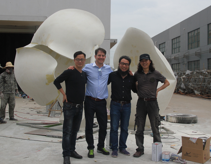 南京先登雕塑不锈钢雕塑作品《天使之吻》创作完成,欧洲特使尼古拉斯到访中国表示祝贺,尼古拉斯对该作品所传达爱的巧妙构思和极具现代古典主义感染力的创造表示高度赞赏。该作品由著名雕塑家郭爱军和郑德东教授首度联合创作,两位艺术家对雕塑《天使之吻》作品在通过用抽象了的玫瑰花瓣构筑的作品酝酿多年,几易其稿。作品通过生命张力的美好形象,让观众对爱的憧憬,寄予浪漫的期许和想象。为江苏洋河农业嘉年华——爱情主题馆点燃了爱的浪漫火焰。