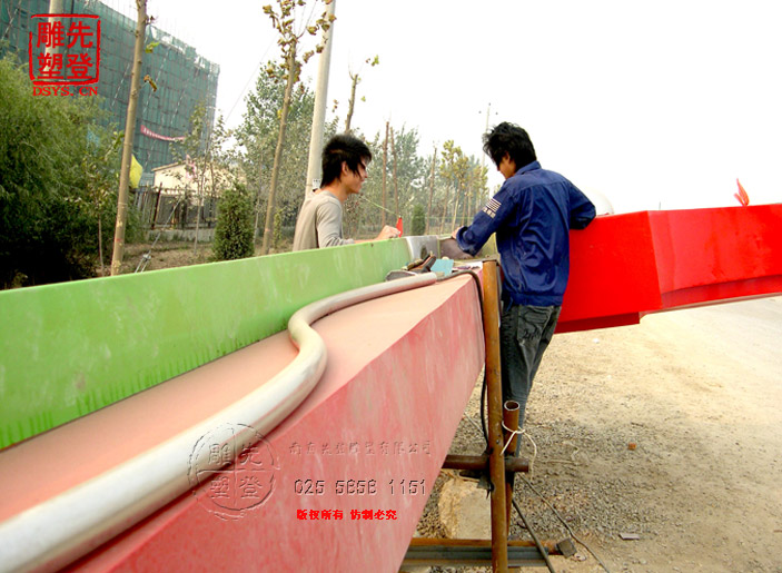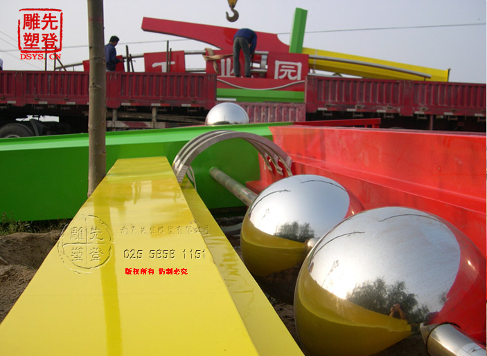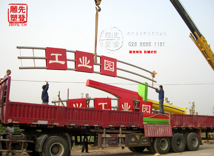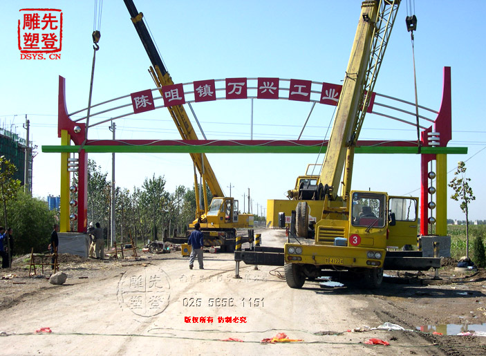 成功案例:不锈钢大门雕塑安装于天津市武清区陈咀镇,高度10米,跨度15米,不锈钢大门雕塑